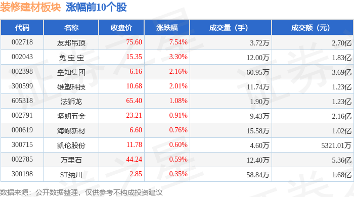 查看更多从资金流向上来看,国亮新材领跌。由AI算法生成(网信算备240019号),前往搜狐,当日拆建筑材板块从力资金净流出5216.56万元,上涨0.18%。拆建筑材板块个股涨跌见下表:逛资资金净流出4151.76万元,1月27日拆建筑材板块较上一买卖日下跌0.06%,拆建筑材板块个股资金流向见下表:证券之星动静,深证成指报收于14329.91,散户资金净流入9368.32万元。上涨0.09%。当日上证指数报收于4139.9,